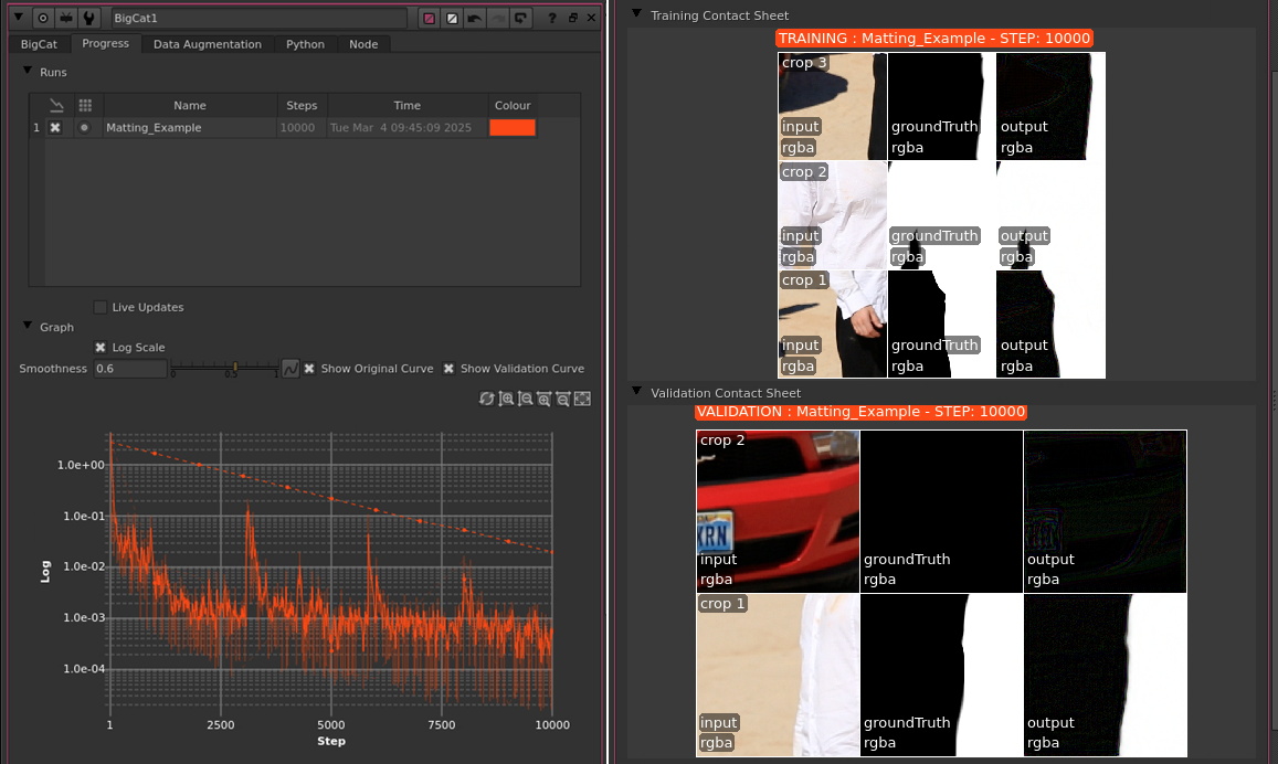 Measure how well your model is performing on unseen data by feeding in a validation dataset using new input nodes. View validation loss on the Training Graph to monitor training performance, and monitor inference on your validation dataset from the new Validation Contact Sheet in the Progress tab.