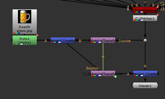 | 7. | To view you paint in latlong space, connect the Viewer to the second C_SphericalTransform node. |