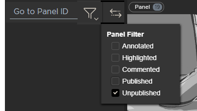 • Check the Published option to see only panels that have been included in a previous publish to editorial.