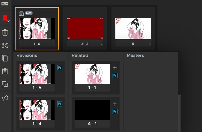 If you've created a composition from multiple panels in the edit, the related panels are also sent to Flix as Ref panels. Reference panels provide easy access to all the images used in Editorial to allow Flix to re-create a composition in the original PSD, improving collaboration and cooperation between Story and Editorial.