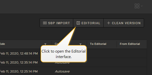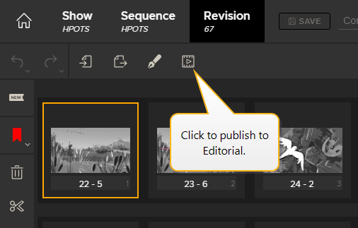| 1. | On the main toolbar of your Revision, click the Publish to Editorial button. |