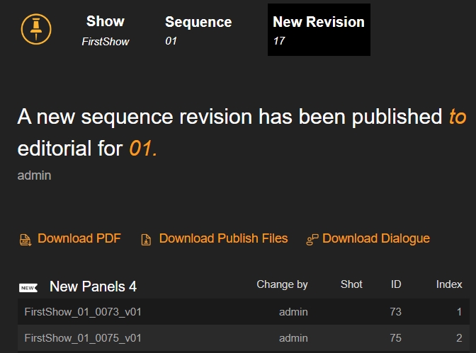 Clickable redirects to the relevant show, sequence, or revision in Flix.