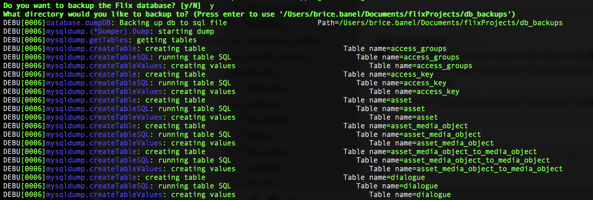 Flix asks if you want to backup the database. Type Y (yes) or N (no).