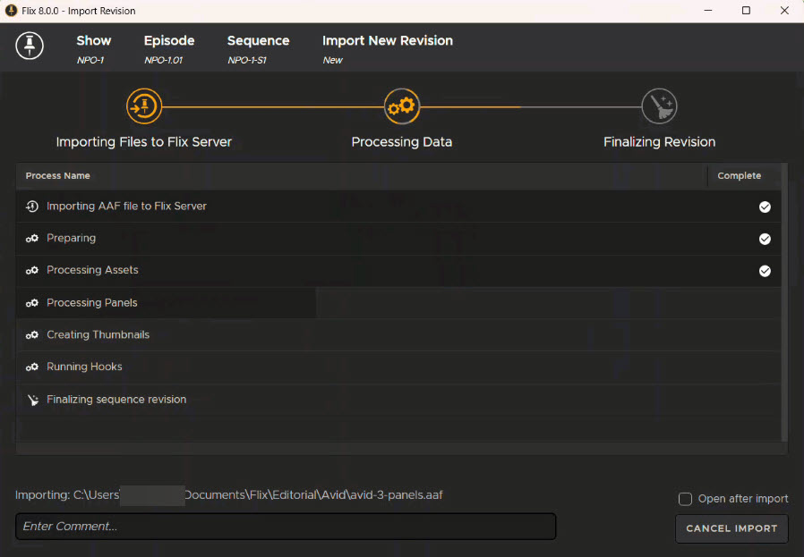 Note: Find out more at Importing Panels into Flix and Panel Versioning.