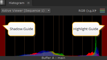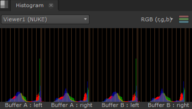 The content menu Windows > New Scope > Histogram provides three color channel and luma channel information that describes the distribution of red, green, blue, and luma pixels throughout the current frame.