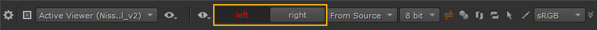 Select the Viewer to feed to the output monitor using the source viewer dropdown. Selecting Active Viewer always displays the Viewer that is currently selected in the workspace. |
