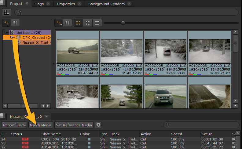 | 1. | If your source media has been ingested, you can drag-and-drop media from the bin view onto the Match Media button. |