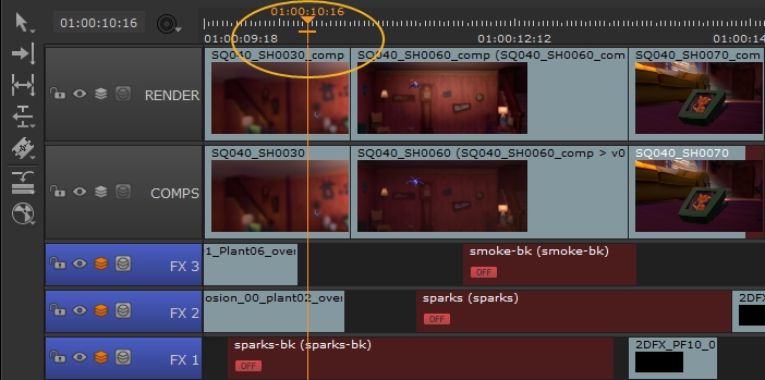 The timeline playhead indicates what is currently displayed in the Viewer using a number of different display markers. Swapping tracks between buffers automatically updates the playhead so that you always know which tracks you are looking at in the Viewer.