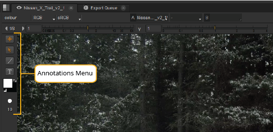 | 8. | You can add new annotations to the rendered Nuke Comp by ensuring you select the Clip radio button and then using the Annotations menu tools. |