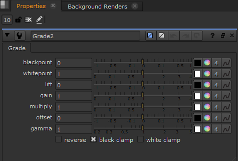 Define white and black points by sampling pixels from the Viewer. For example, you can use this for matching foreground plates to background plates. Alt+G inserts a Grade soft effect on any shot selections or at the playhead |