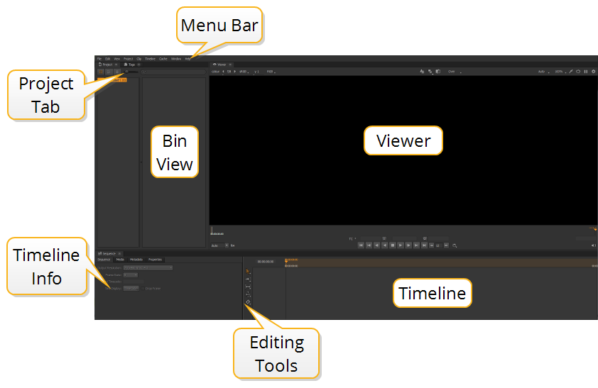 • The Timeline workspace is similar to the Editing workspace, but only include a single source Viewer.