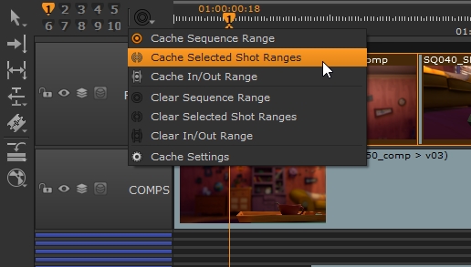 icon, and then select Cache Selected Shot Ranges.