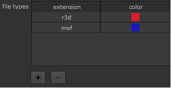 Allows you to add custom color-coding by file extension. Click the Any source clip or shot with that extension is then colored accordingly in the interface.