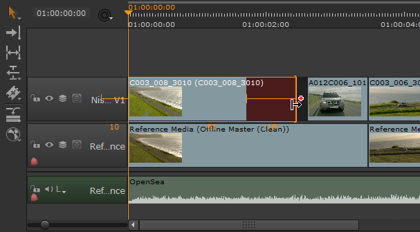 The Move/Trim tool allows you to manipulate the position of a shot or its output by adding or removing handles. Activate the Move/Trim tool by clicking the tool or pressing Q twice.