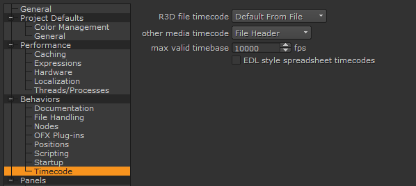 | 3. | Use the RED file timecode dropdown to determine R3D clip behavior: |
