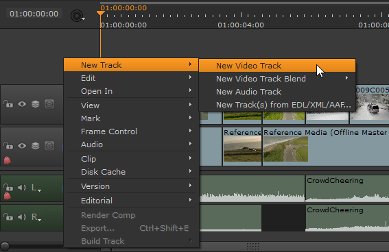 • Right-click in the timeline and select New Track > New Video Track or New Audio Track.