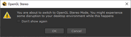 The first time you select OpenGL Stereo, a warning message is displayed.