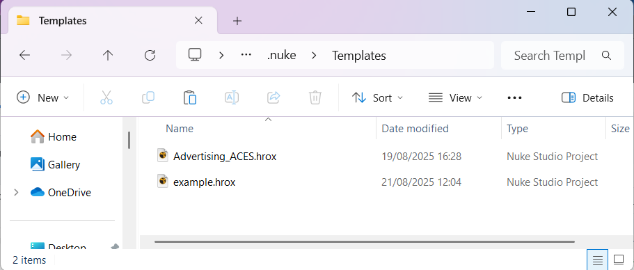 3.   Save your Hiero or Nuke Studio project into the .nuke/Templates folder, with a name for the template. E.g. Advertising_ACES.hrox.