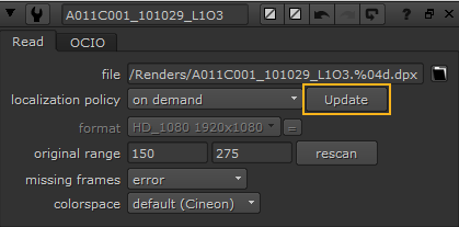 Note:  If a Read node's localization policy is set to on demand and it hasn't been localized previously, clicking the Update button localizes the file.