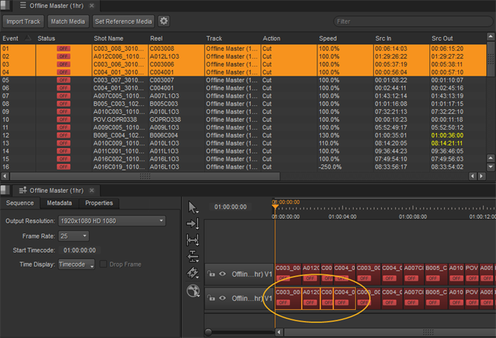 Note:  The Event column represents the clip’s position on the timeline, not its event number from the edit.