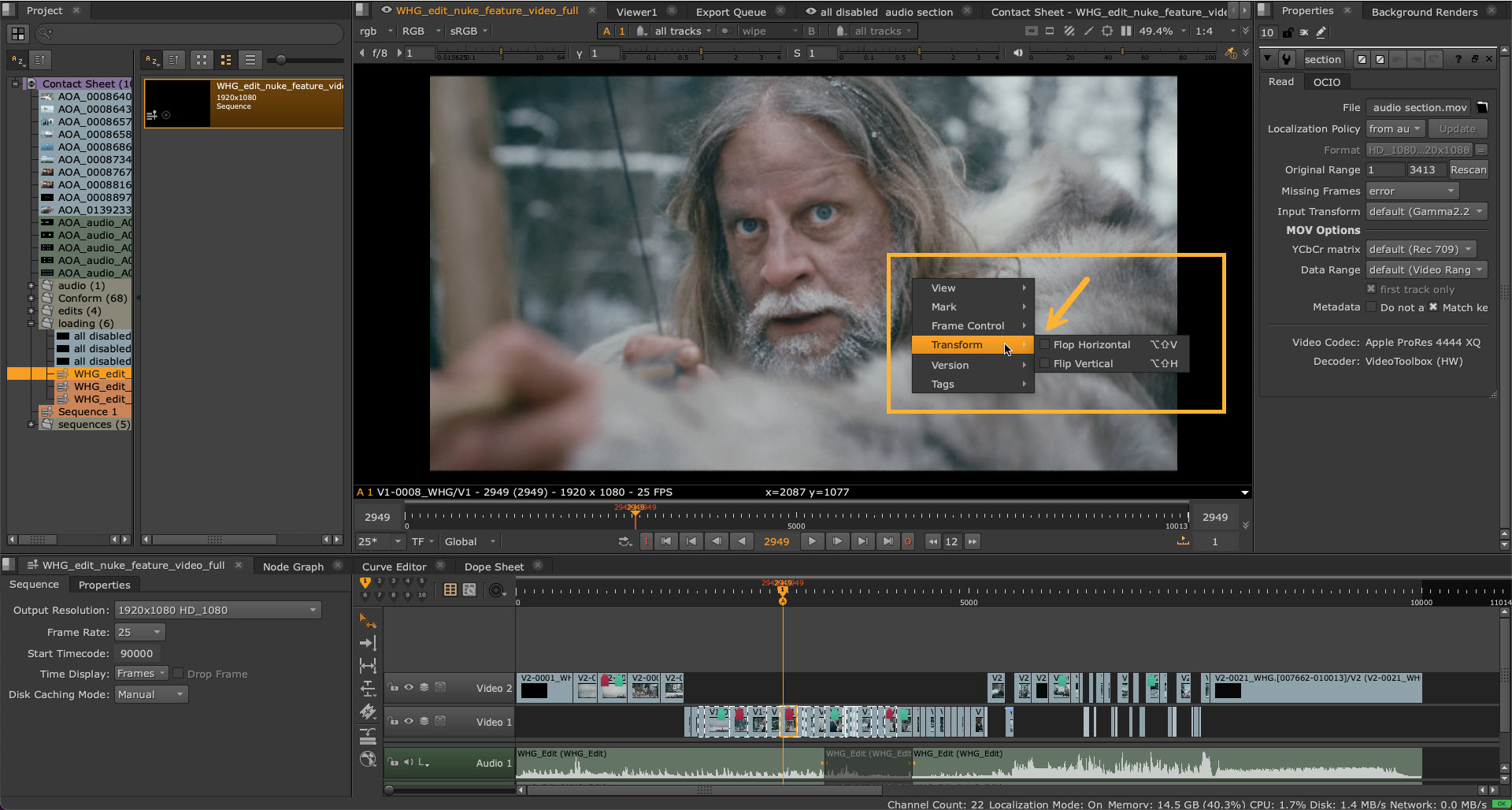 If you right-click on a shot in the timeline Viewer, a contextual menu will appear with various options.