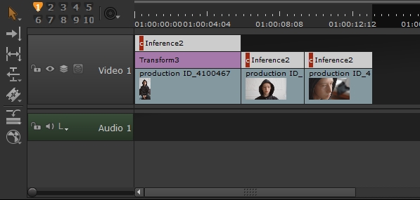 You can easily test how well the Inference effect works on other shots by simply copying and pasting the effect onto those shots. However, once you intend to use an Inference effect on multiple shots, it's a good idea to apply it to one shot first and then clone the effect to the other shots in case you update the .cat file later on with further training. Another useful method is to apply the soft effect to a track above the clip, then extend it to cover as many clips on the tracks below as needed. You can also cut the soft effect into pieces for more control over which clips it applies to.