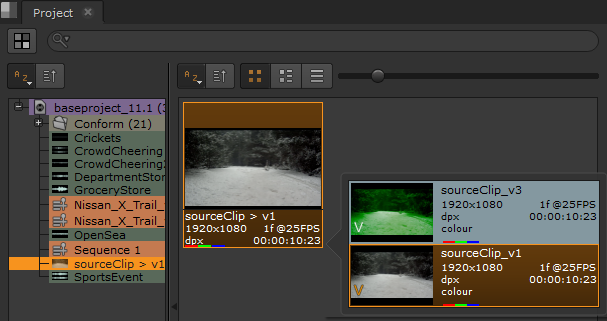 | 3. | For source clips only, you can right-click the clip and select Open In > Versions Bin to display all discovered versions of the target clip. |