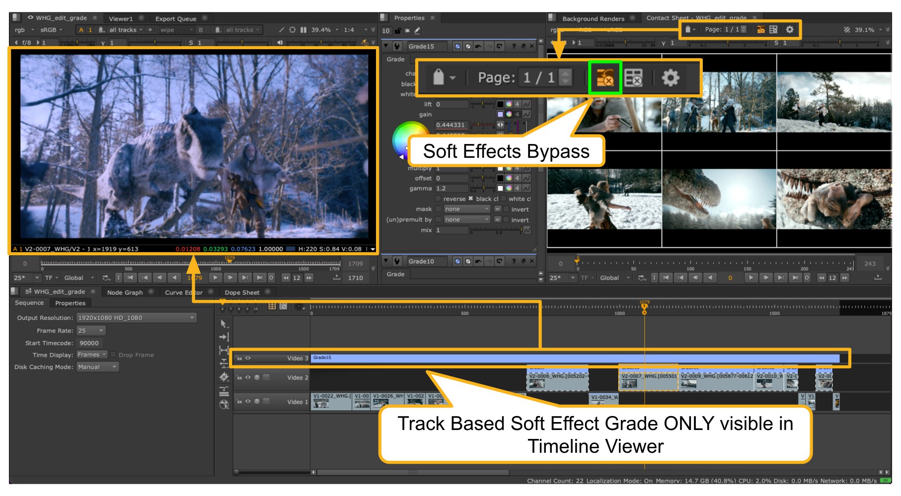 Another really useful workflow in Contact Sheet is the ability to display multiple shots that have clip-based and layer-based Soft Effects.