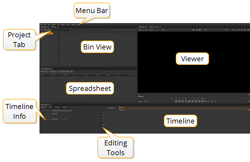 The Timeline workspace is similar to the Editing workspace, but only include a single source Viewer.