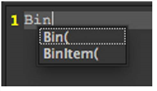 For example, typing Bin and pressing Tab displays a list of objects starting with Bin: