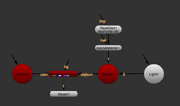 | 2. | ApplyMaterialノードの名前のない入力をジオメトリに接続します(たとえば、Sphere、ReadGeo、ModelBuilderノード)。 |