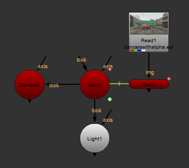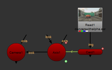 オプションを使用できますlookカメラノードの入力。これにより、カメラは自動的に回転して、接続された入力に向かいます。Camera、Light、またはAxisノードをlook入力。たとえば、Axisノードをlook入力すると、カメラはどこに移動しても、軸に面するように回転します。