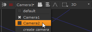 現在のデータストリームのカメラは、選択可能なカメラのドロップダウンメニューに自動的に表示されます。メニューに表示されないカメラを選択するには、カメラノードをダブルクリックしてパネルを開き、メニューに追加します。