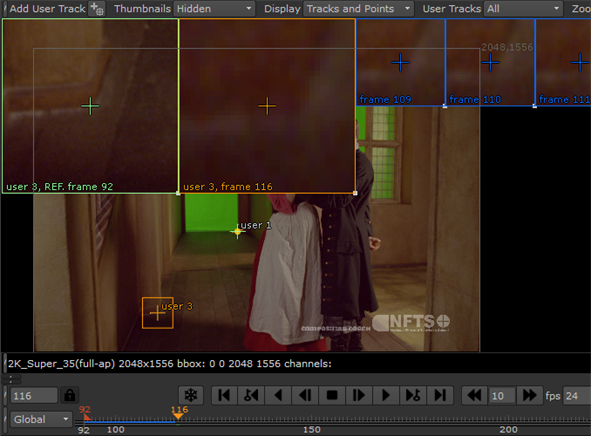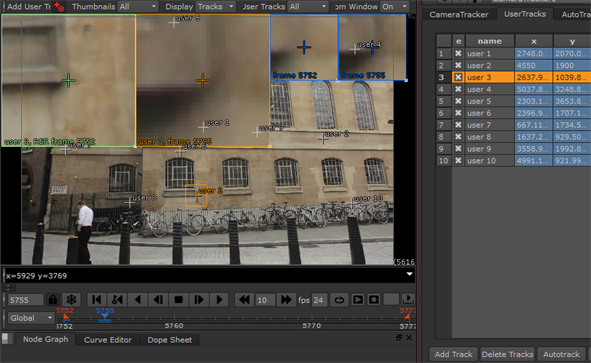 ヒント: 通常、静止画にユーザートラックを手動で作成するだけです。Nukeのトラッカーノードは、ユーザートラックとしてインポートできる連続シーケンスの信頼できるトラックを作成できます。