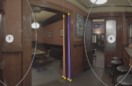 | 1. | 2つの隣接するカメラで発生する既知の線形フィーチャを見つけます。例には、ドアフレーム、テーブルトップ、タイルなどが含まれます。 |