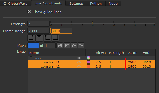 | 5. | で制約を選択しますProperties > Line Constraints > Linesテーブルと設定Strengthおよびフレーム範囲コントロール。 |