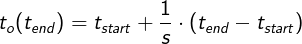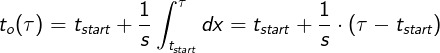 入力シーケンスが[t_start, t_end]。入力シーケンスのリタイミングTiming > Input Speedモードは、入力シーケンスで時間が流れる速度を変化させるため、ある時点でtau、入力時間フレームで、出力時間にマップしますt_o次のように: