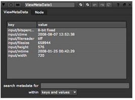 ファイルのメタデータを表示する最も簡単な方法は、 MetadataのタブProperties標準読み取りノードのパネル。利用可能なすべてのメタデータが、シンプルな検索機能とともに表示されます。