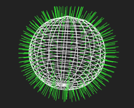 ヒント: 法線を表示するには、を押しますSビューアでビューア設定を表示するには、 3Dタブ、およびアクティブ化show primitive normalsボタン