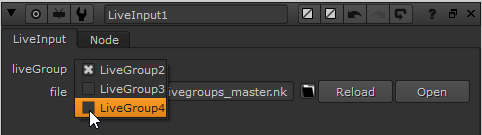注意: クリックOpen LiveGroupのProperties新たに始めるNuke LiveGroupのコンテンツのみを含むセッション。