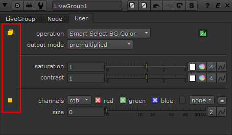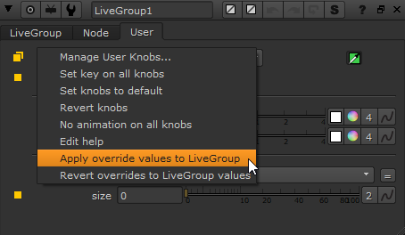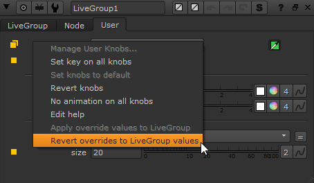 注意: オーバーライドコントロールは、ノードグラフのLiveGroupノードにも表示されます。