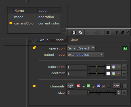 current colorそしてchannelsコントロールはオーバーライドです。二重の黄色いチップは、一番上の行のコントロールの1つがオーバーライドであることを示します。この場合、 current colorコントロール。