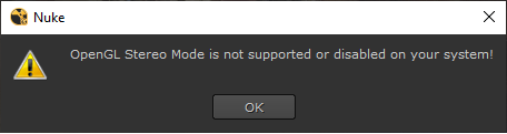 OpenGL Stereoを初めて選択すると、警告メッセージが表示されます。
