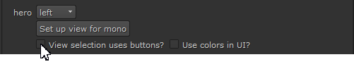 多くのビューを作成した場合は、ビューアーコントロールとノードコントロールの個別のボタンとしてではなく、ドロップダウンメニューに表示することができます。ドロップダウンメニューの使用に切り替えるには、無効にしますView selection uses buttons? にViewsのタブProject Settingsパネル。