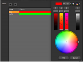 2つの新しいビューには、デフォルトで赤と緑の色が割り当てられています。色を変更するには、色フィールドをダブルクリックして、カラーピッカーから別の色を選択します。