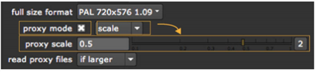 プロキシ用scale、プロキシモードがアクティブになるたびに画像を縮小する単純なスケールファクターのみを定義します。たとえば、0.5の倍率を使用して、画像を半分のサイズに縮小できます。