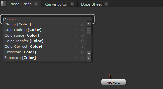 ツールバーメニュー名で検索することもできます。たとえば、色補正ノードを検索していることがわかっている場合は、次のように入力できます[Color]。