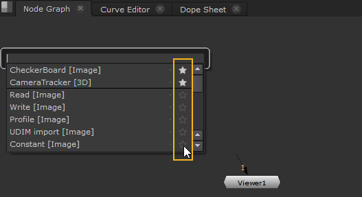 お気に入りを使用すると、最も頻繁に使用するノードをマークして、 Tabメニュー。ノードリストのエントリの横にあるスターをクリックして、お気に入りを追加および削除できます。