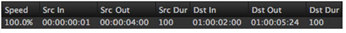 イベントのトリムSrc Out、 Dst Out 、そしてdurations速度を維持しながら。 2秒の前後Src Out増加する: