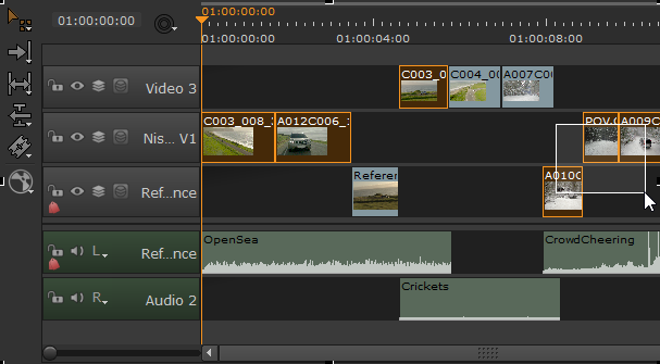 • Select Track to RightまたはLeft -1つのトラック内で、ターゲットショットの右または左のすべてのショットが選択されます。